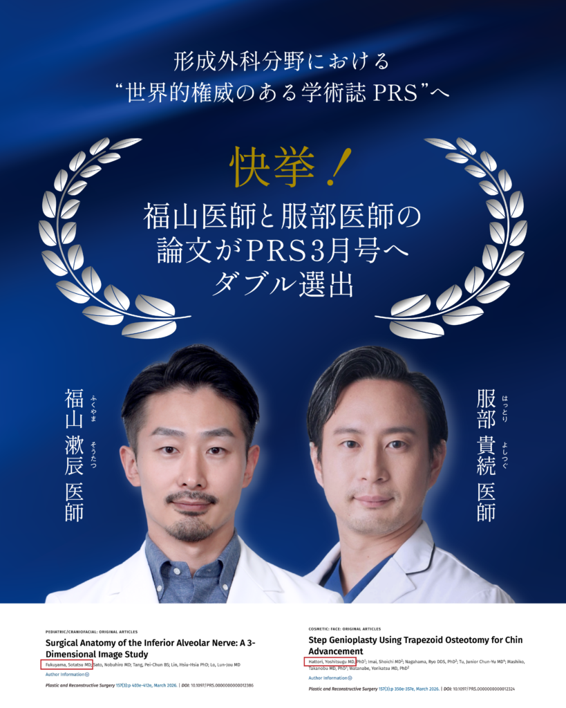 この度、当院の福山 漱辰 医師と服部 貴続 医師の論文が、形成外科分野で世界的に権威のある学術誌『Plastic and Reconstructive Surgery (PRS)』2026年3月号に、揃って掲載されるという快挙を達成いたしました。